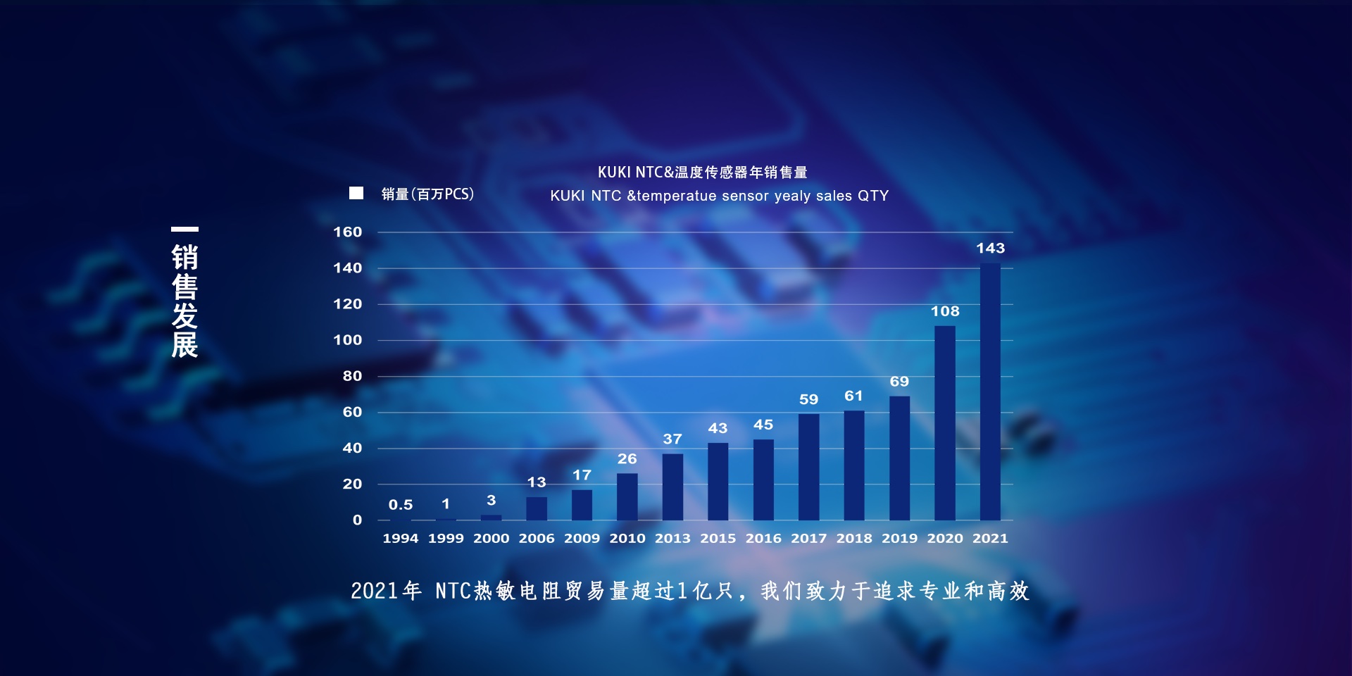 关于我们ABOUT US关于我们ABOUT US深圳市久喜电子有限公司(前身“瑞浪电子”),成立于1994年,工厂位于中国深圳,拥有厂房面积30000平方米,员工1000多人,专业从事热敏电阻销售和温度传感器制造,现是NTC热敏电阻行业知名厂家. 久喜专注于温度传感器的设计和制造,致力追求“专业,高效”,通过ISO9001/IATF16949质量管理体系认证,拥有超过26年丰富的生产经验,拥有多条自动化生产线,目前已生产制造传感器品种超过200个,服务客户数量超过2000家,产品供应行业超过50个,每天产能近40万,20多年来,我们为温度控制和测试系统的大范围消费用品和商业用品应用,提供多样化的温度传感器,为客户提供从设计到生产的一站式个性化服务,为市场持续提供高性能优质产品并在行业中建立了“久喜制造”的品牌式优质信誉。 |